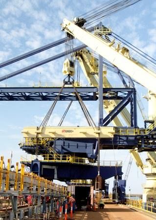 - Erection and assembly of modular shiploader components directly onto the new wharf