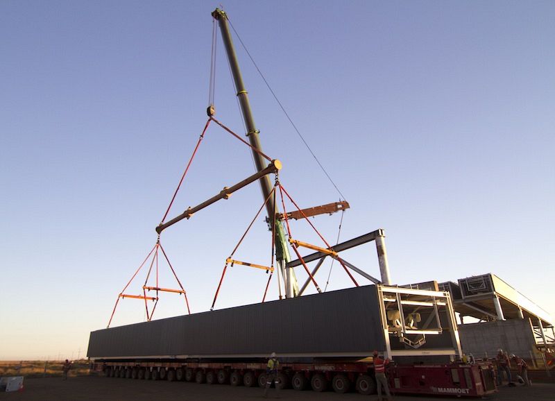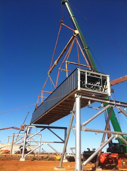 Due to accommodation shortages in Port Hedland, an innovative solution was implemented to reduce on-site manning levels. Led by Jamie Allen, Goodline established a steel erection team in Henderson (Perth) to pre-assemble and construct six transfer stations and sample stations. The modular built port infrastructure was then shipped to Port Hedland and installed directly onto foundations from low-loader floats. The innovative construction technique reduce on-site labour costs, improved quality assurance controls and eliminated safety hazards associated with on-site stick built steel erection.
